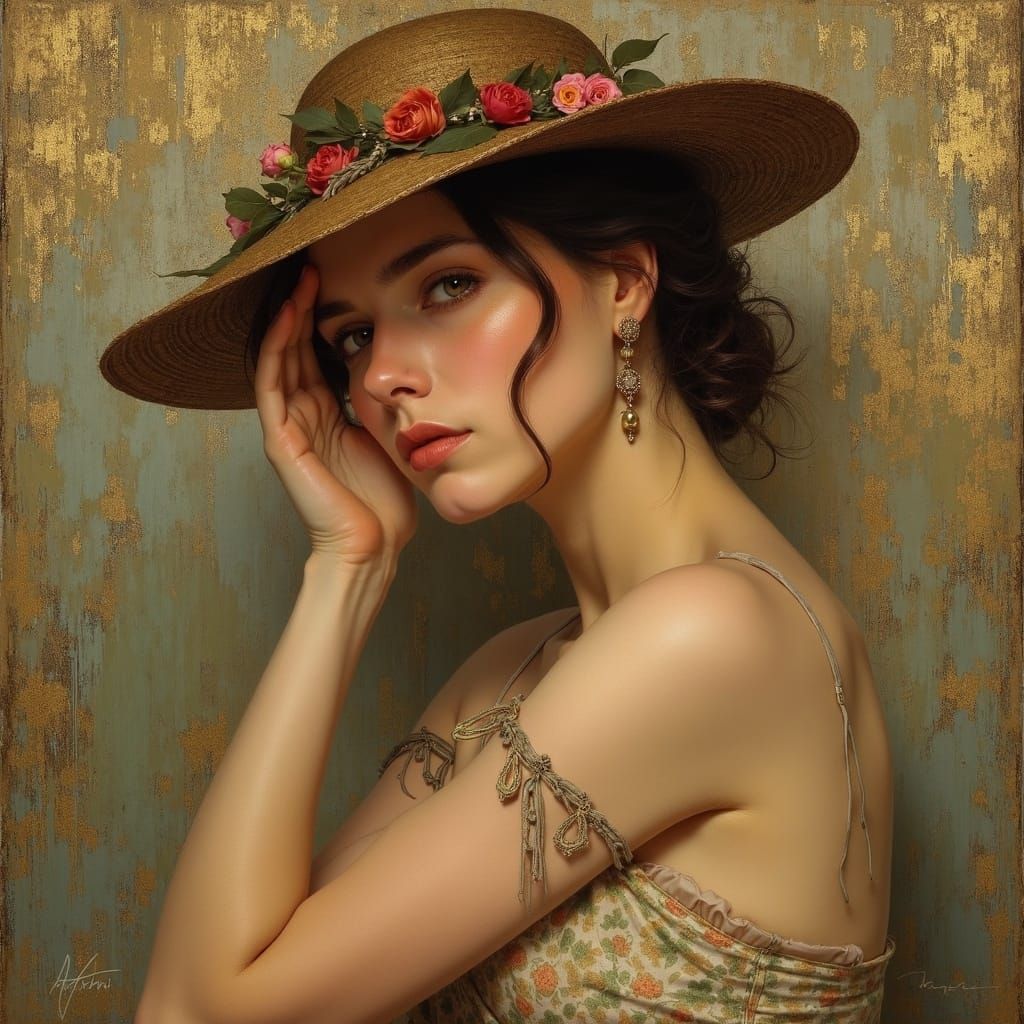 A breathtaking digital painting of a beautiful woman, inspired by classical and art nouveau masters, featuring elegant lines and a refined aesthetic.