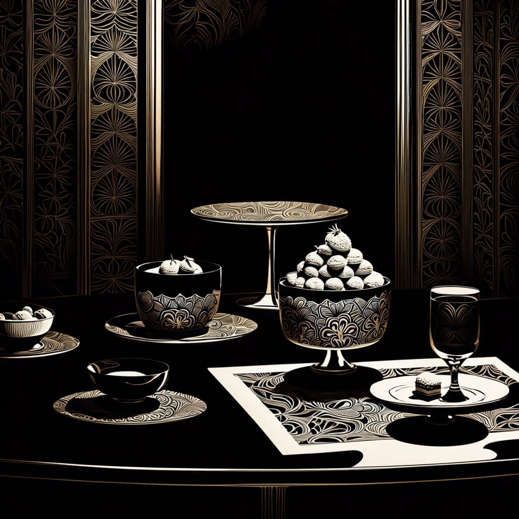 Easily design your own art deco dessert still life images with our free AI image generator. No design experience needed.