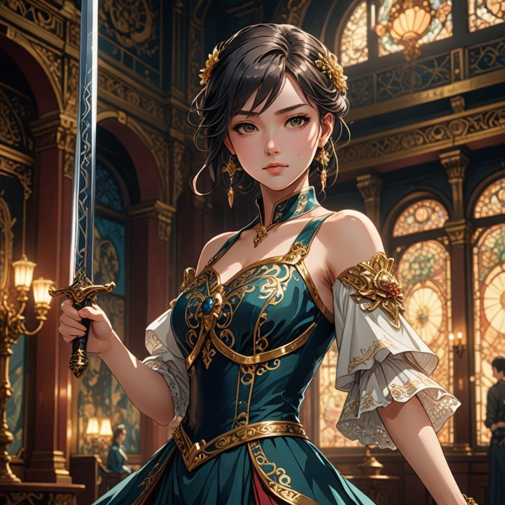Easily generate your own Art Deco-style images of girls fighting with swords using our free AI image generator