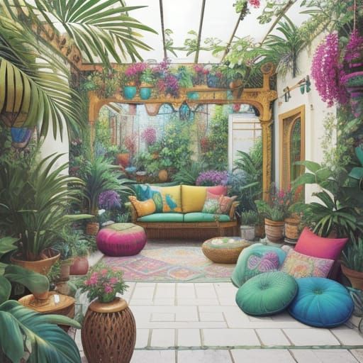 Easily generate your own whimsical bohemian patio scenes with our free and flexible AI image tool. Start creating now!