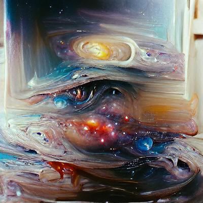 A vibrant oil painting of the universe. The artwork captures the immensity of space through swirling nebulas and celestial bodies, reminiscent of classical fantasy art.