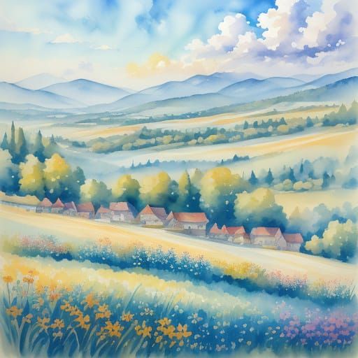 Watercolour county landscape