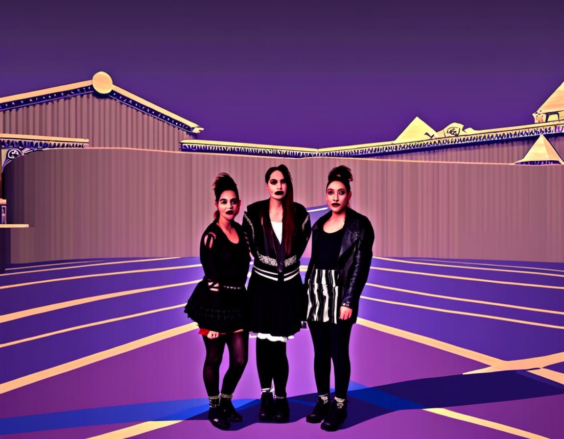 A depiction of Disney princesses reimagined as female vampires inside a dark castle. The image is rendered in a gothic oil painting style with moody lighting and a color scheme of deep blues and purples.