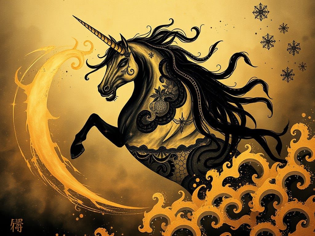 Generate your own unique unicorn and nebula-themed art in a Japanese sumi-e style. Free and easy to use!