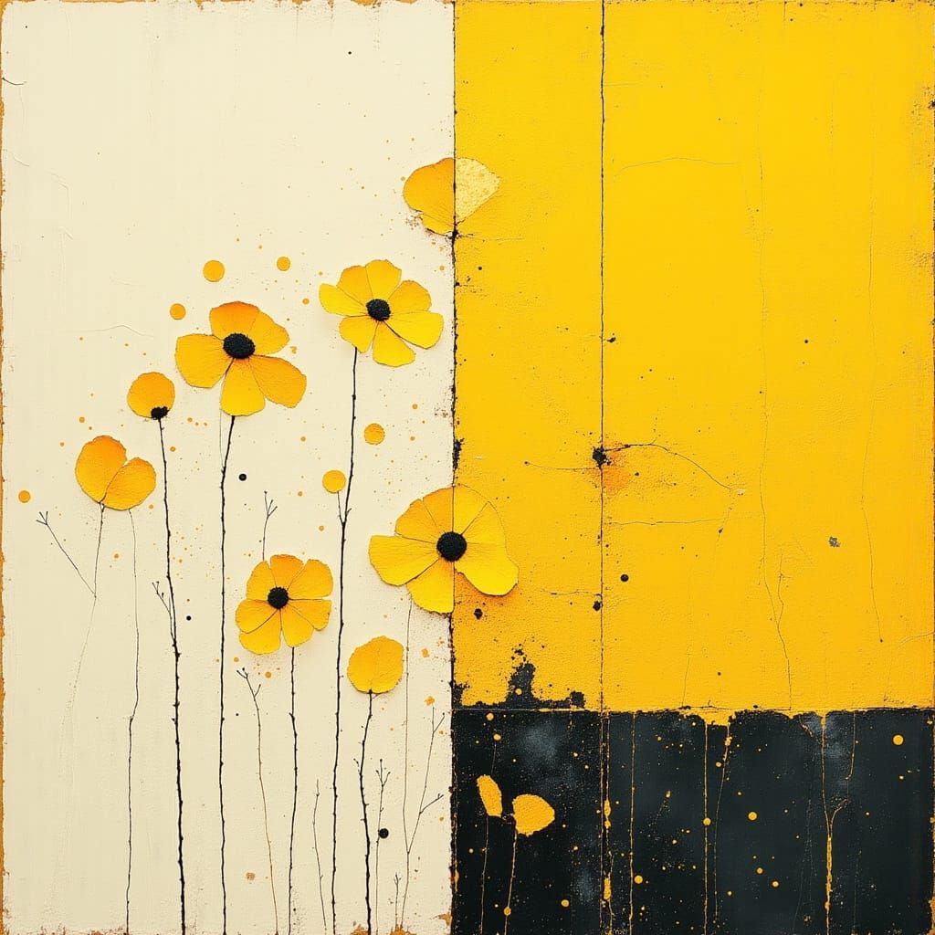 Generate unique minimalist abstract paintings of delicate yellow flowers with clean lines. Free and easy AI art creation.