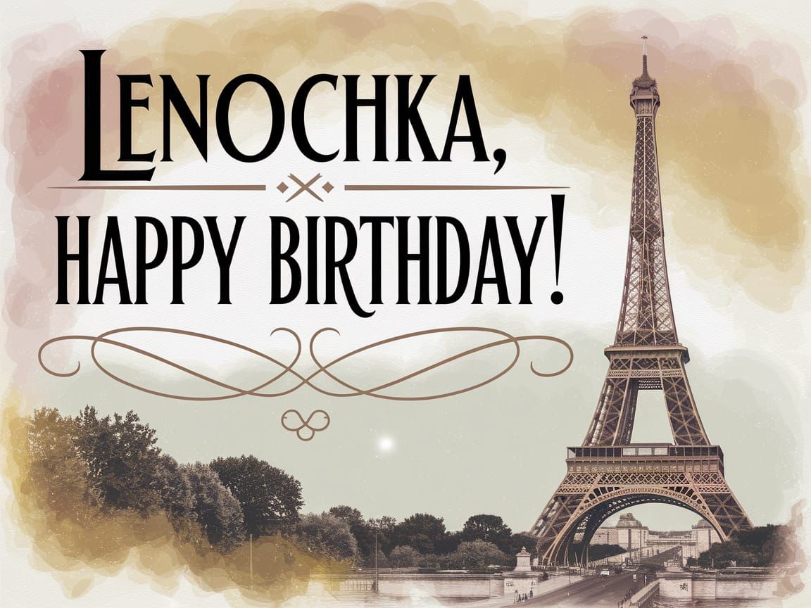 Vintage French Greeting Card with Inscription “Lenochka, Happy Birthday!”
