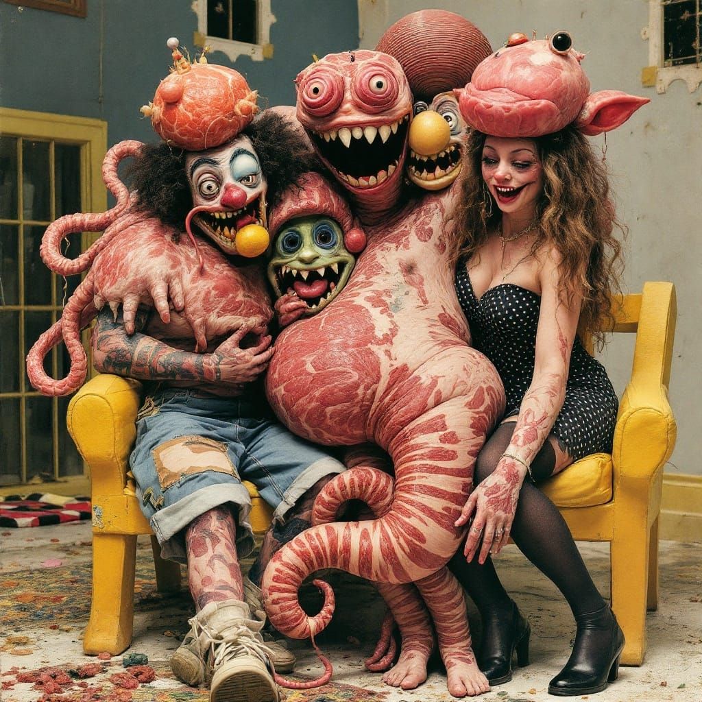 the wacky overlapped technicolor contorted sideshow situationist photomontage by Leopold Löwy, dain yoon, jakub erol, bobby neel adams, wacky cramped contortionist goober lunatics from neighborworld, the woim toins in the thinless d'onofrios bonkers situationist photomontage by Francesca Woodman and ...