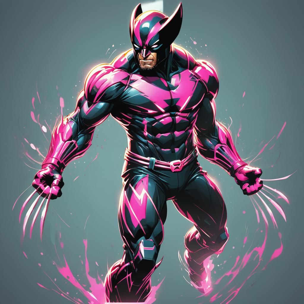 This image shows a vibrant, glowing pink Wolverine figure. The artwork is rendered in a spectral, phantom style, emphasizing fluid and ethereal qualities.