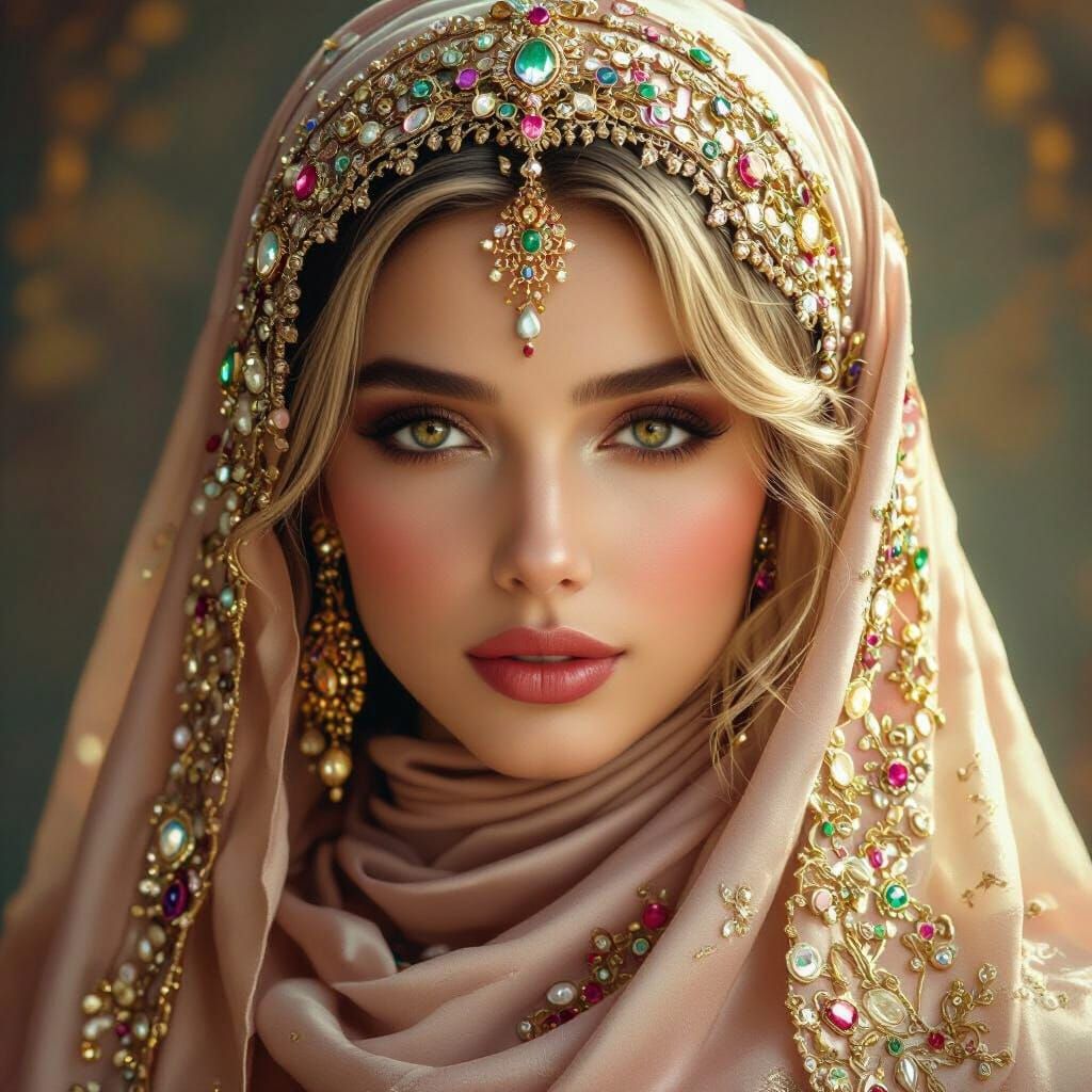 Generate unique AI portraits with custom details, like veils and jewels. Try our free AI image generator today!