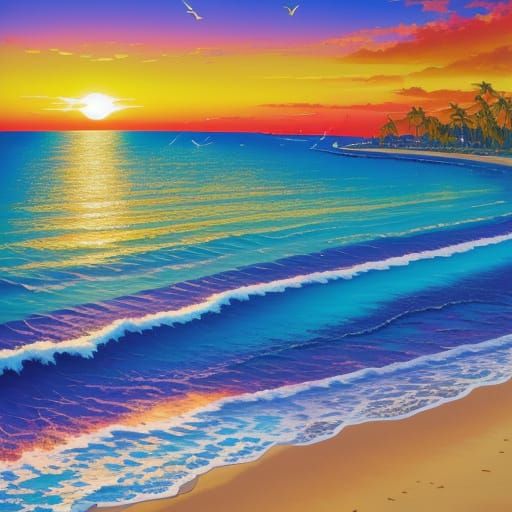 Easily create your own beach sunset images with our free AI image generator. Perfect for artists and designers.