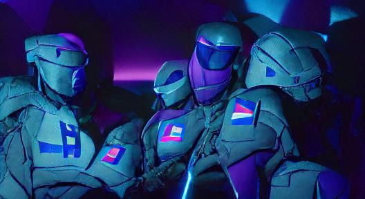 This image depicts Halo Spartans bathed in vibrant bisexual lighting. The scene conveys a sense of futuristic action and dramatic atmosphere through the strategic use of color.