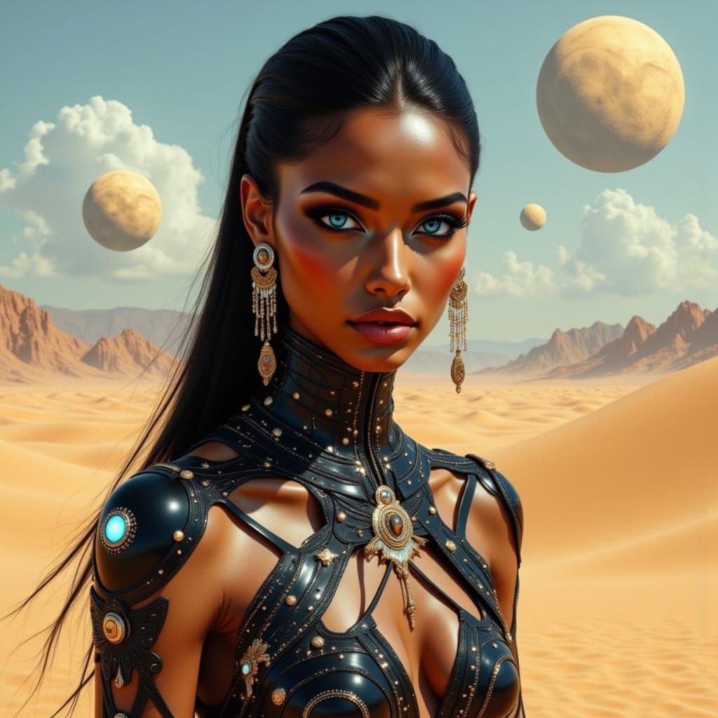 Generate your own stunning Vogue-style photoshoot images on any planet with our free AI tool.