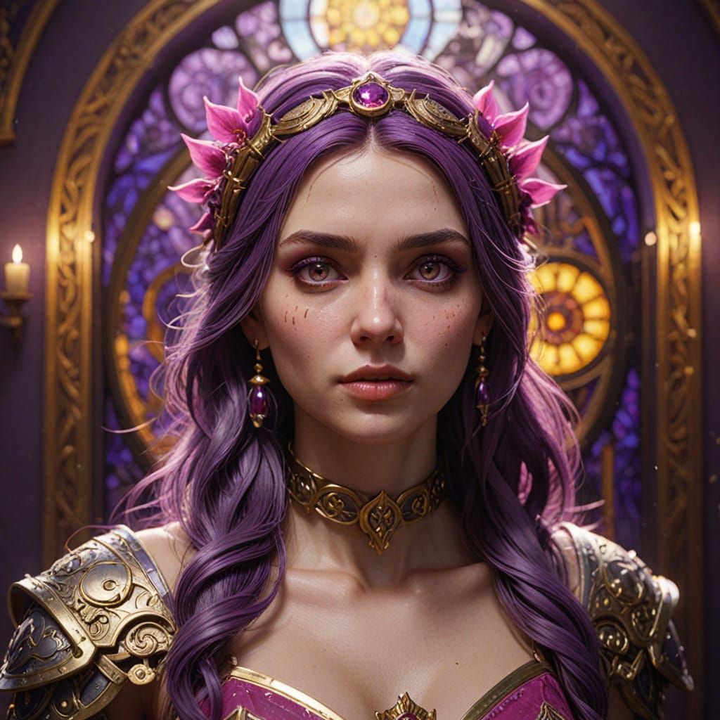 This image features a stunning, hyperdetailed cinematic still of a white-skinned half-orc giantess with bright pink eyes. Rendered in a dark fantasy style with dramatic lighting and rich colors, it evokes an epic, atmospheric masterpiece.