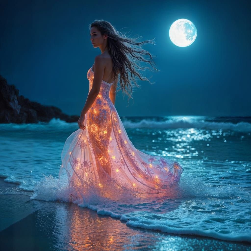 Generate unique portraits of women in glowing beach gowns with our free AI image generator. Easy and fun!
