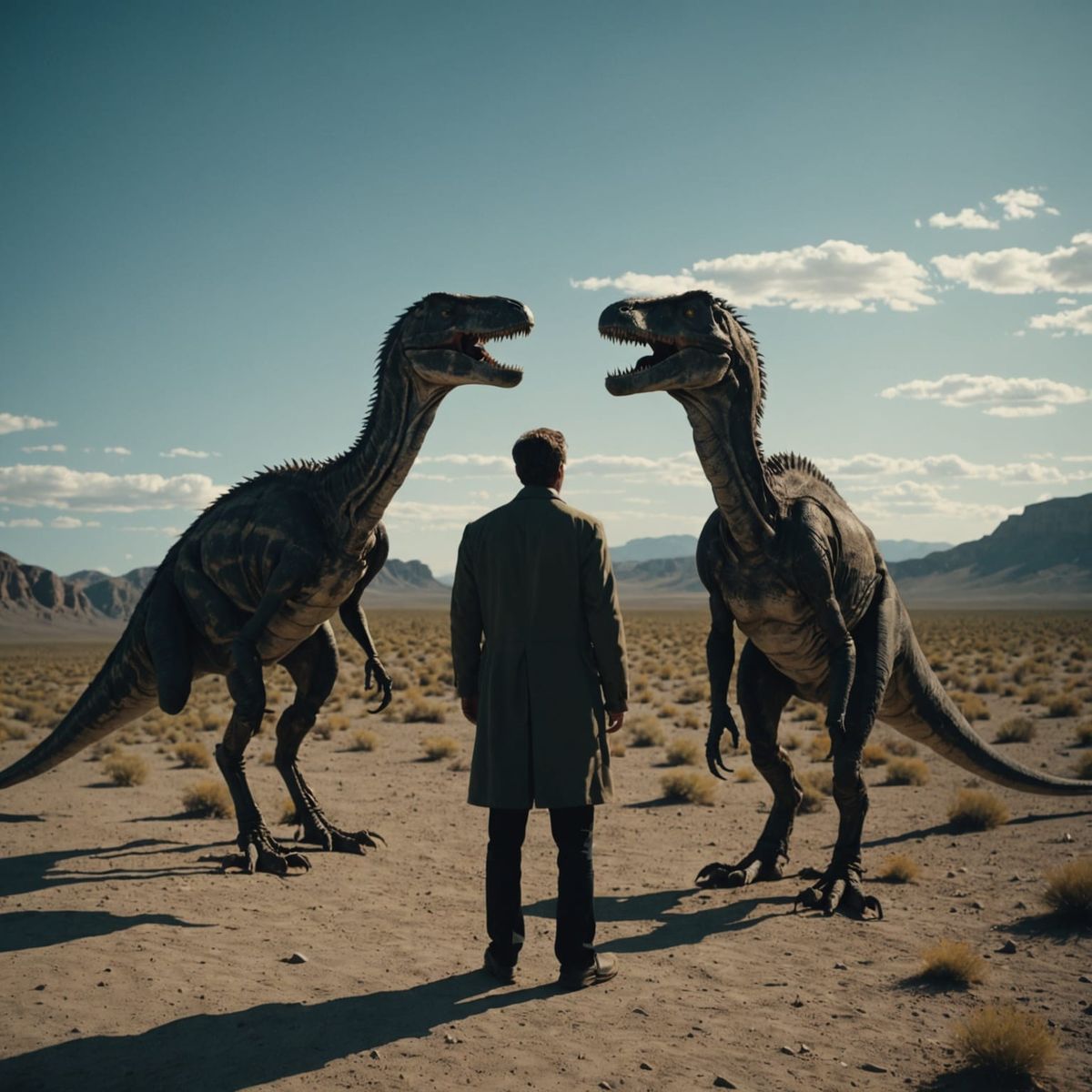 Two Veloceraptors, Reminiscing on the Original shoot of " Jurassic Park ".