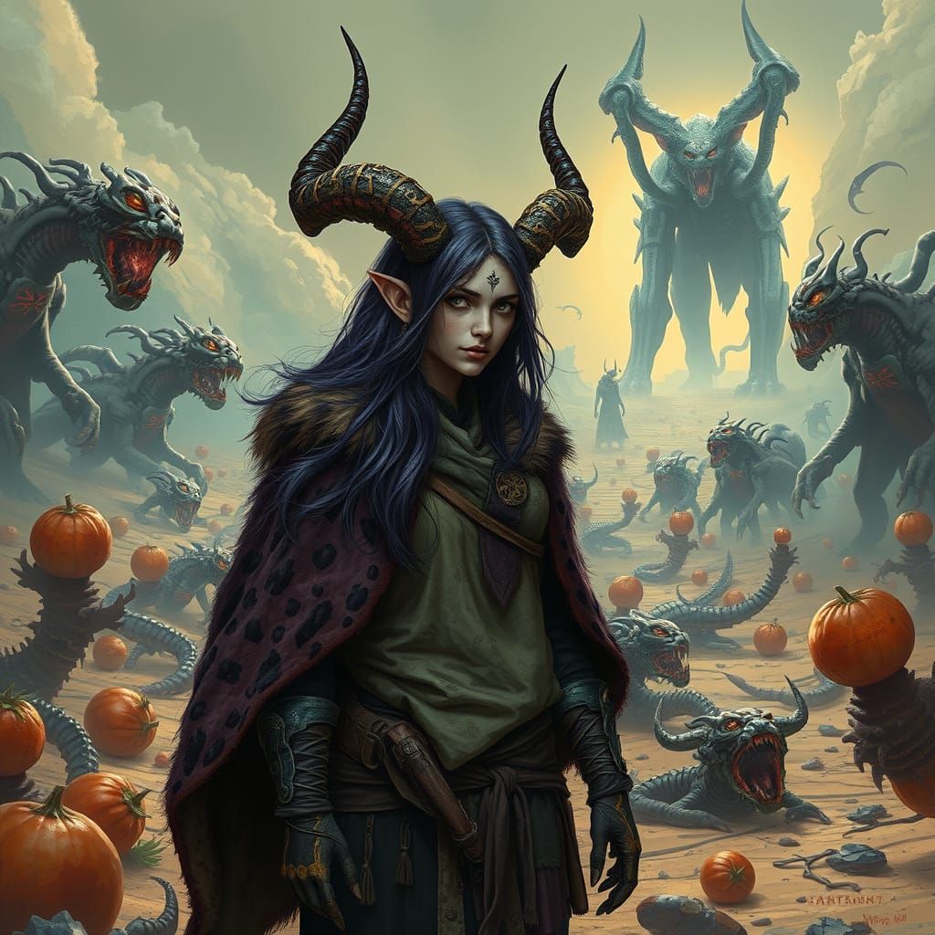 A haunting, surreal landscape of mutated foods, where a dark priestess stands resolute amidst an otherworldly energy. Influenced by the works of Zdzisław Beksiński, this piece combines twisted biomechanics with eerie, dreamlike atmospherics.