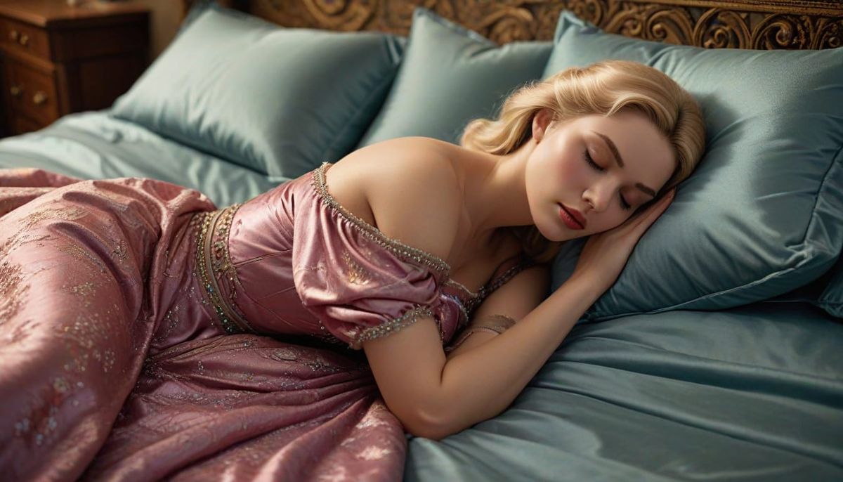 This image depicts Sleeping Beauty in a state of serene slumber. The artwork emphasizes her sensuality with soft lighting and delicate details.