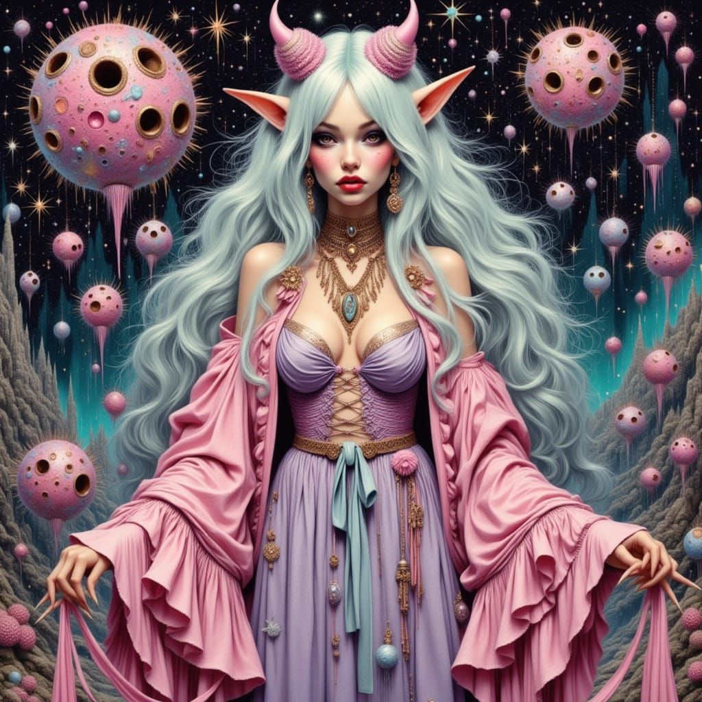 Easily generate unique satanic elf art and pop surrealist paintings for free with our AI image generator.