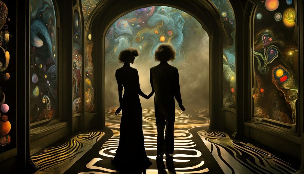 fuzrry dancing critters acrylic wash painted on glass couture inside out luminescent dust waves metalorganic cosmic backlit darkly 3D fractal chromoshadow surrealastic by artist "Herbert bayer, Kandinsky" by artist "deco nouveau" the heartache of joyous sorrow by artist " sparkletwinkly chromoshadow"Where ...