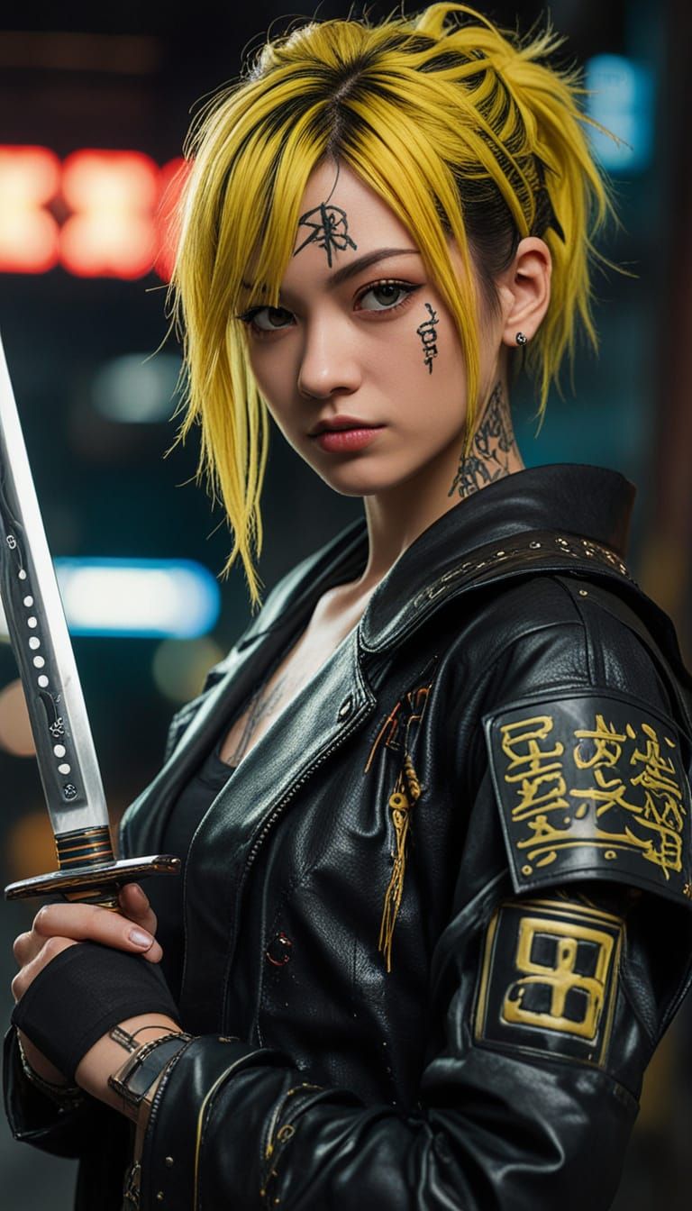 Easily generate unique images of rebellious punk goth Japanese women with neon tattoos. Free and flexible AI art generation.