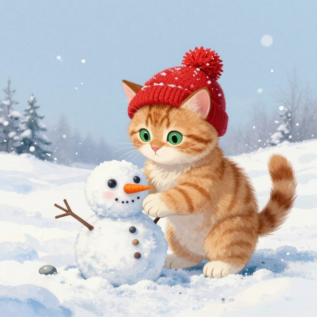Easily generate adorable kitten and snowman images for free. Get creative and make your own unique scenes in moments.