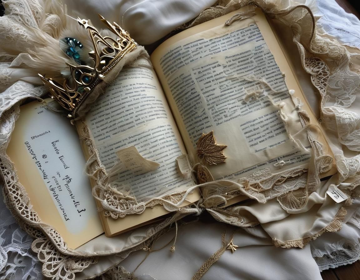 This image shows a surreal portrait with a crown of words. The portrait is rendered with intricate detail and evokes a dreamlike, literary atmosphere, as digital art.