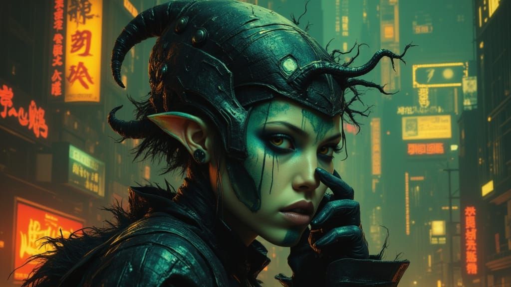 A hyperdetailed, 8k resolution concept art portrait of Mangoria, a resident of the Twilight Zone. Features dynamic lighting and triadic colors, rendered with intricate detail.