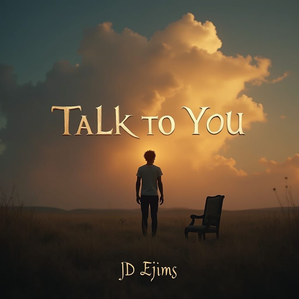 This image shows a lone man silhouetted in a field at twilight. Ethereal clouds form the shape of a face in the dramatic, cinematic lighting. Warm golds and deep blues create a dreamy aesthetic.
