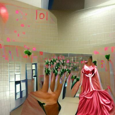 This image is what an AI image generator created when given a very simple prompt about an imaginary prom date.