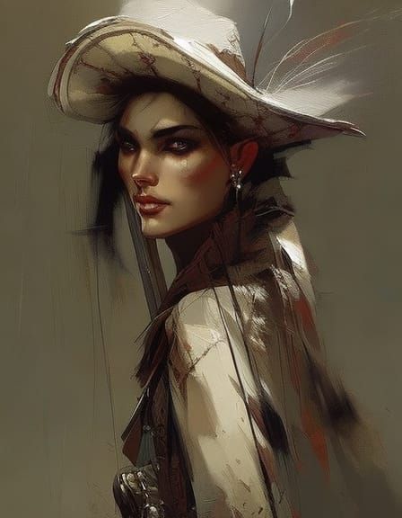 A vibrant portrait of Dulcinea, inspired by "Don Quixote". This digital painting features dynamic brush strokes, paint splatters, and graffiti art elements against a light backdrop.