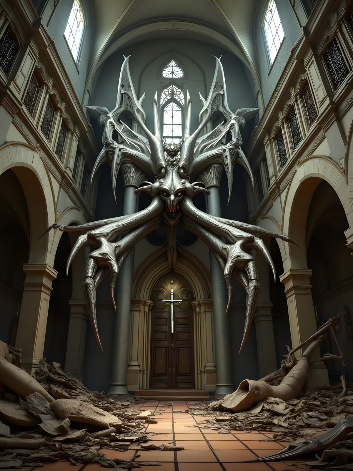 <lora:HyperPhotoRealism:1.0><lora:photosurrealism:1.0>Church (Transformation:1.3) Religion is not only unholy but satanic, decay, scourge, affliction, curse, pestilence, withering, evil, bane, contamination, rot tonalism fused oil on canvas. Hieronymus Bosch, Salvator Rosa and Todd McFarlane.