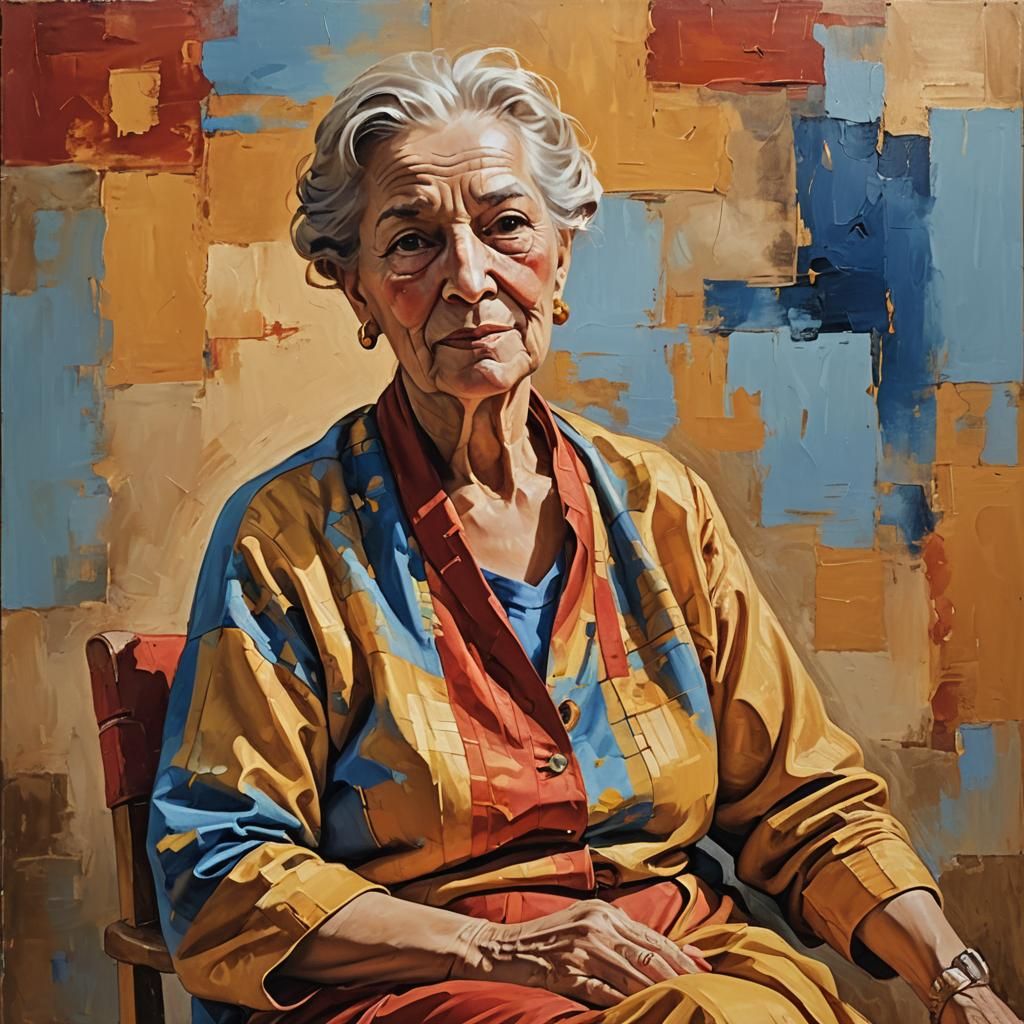 Oil painting of a beautiful elderly woman
