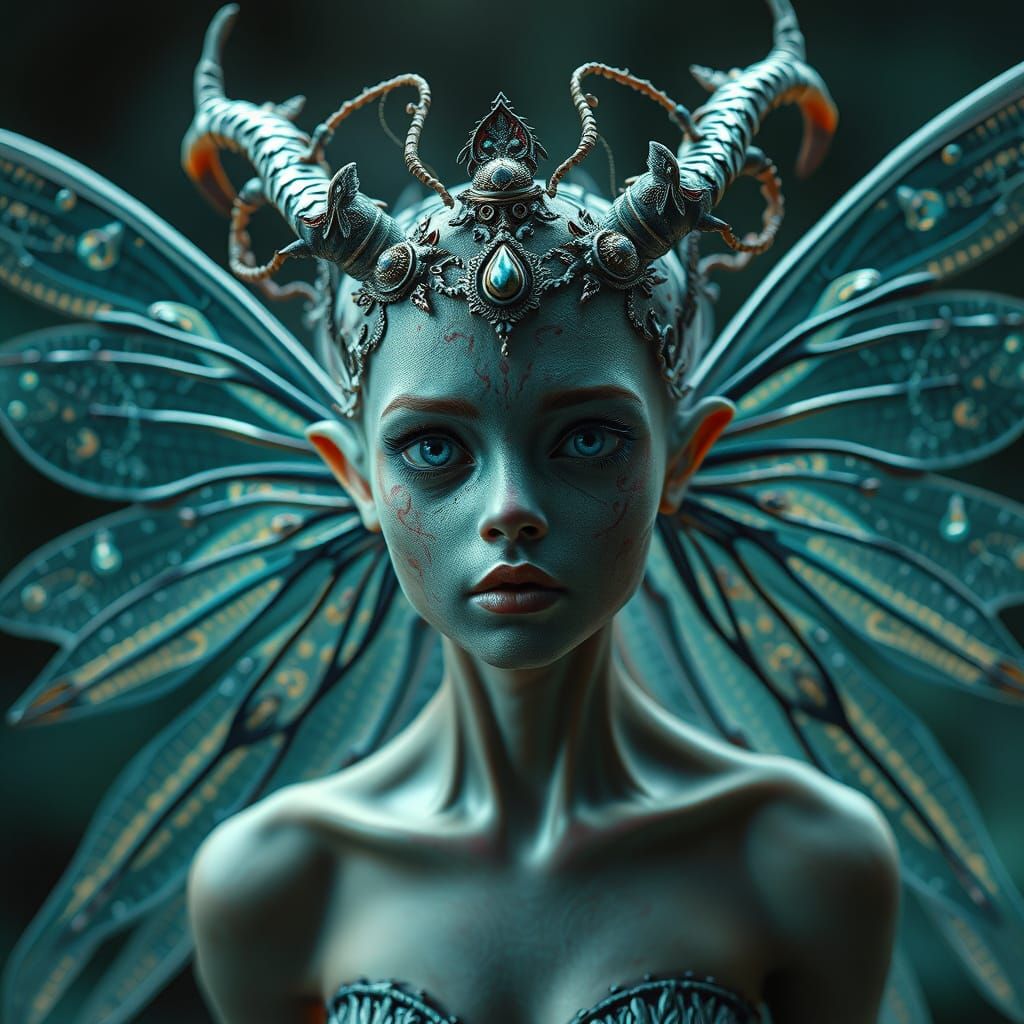 This image shows a beautiful, highly detailed young fairy. The ultra-realistic, 8k panoramic view captures the strange and peculiar details of this stunning creation.