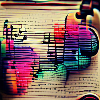 This image is what an AI image generator created when given a very simple prompt about music. It depicts the essence of music in a visual form.