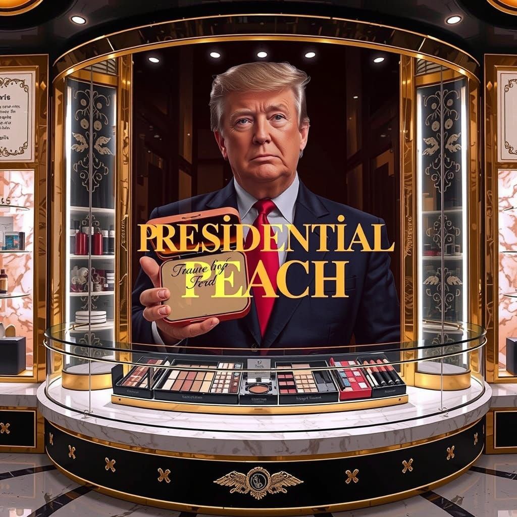 Each gold-plated Tinètte™ of Presidential Peach™ is personally hand-fingered by Donald. This ensures that minute, yet life-enriching DNA traces of your chosen, God-Saven™ President are shared with each and every one of you fine, upstanding citizens. At just $399, you are investing in the natural, peach-glowed PresidentialLook™