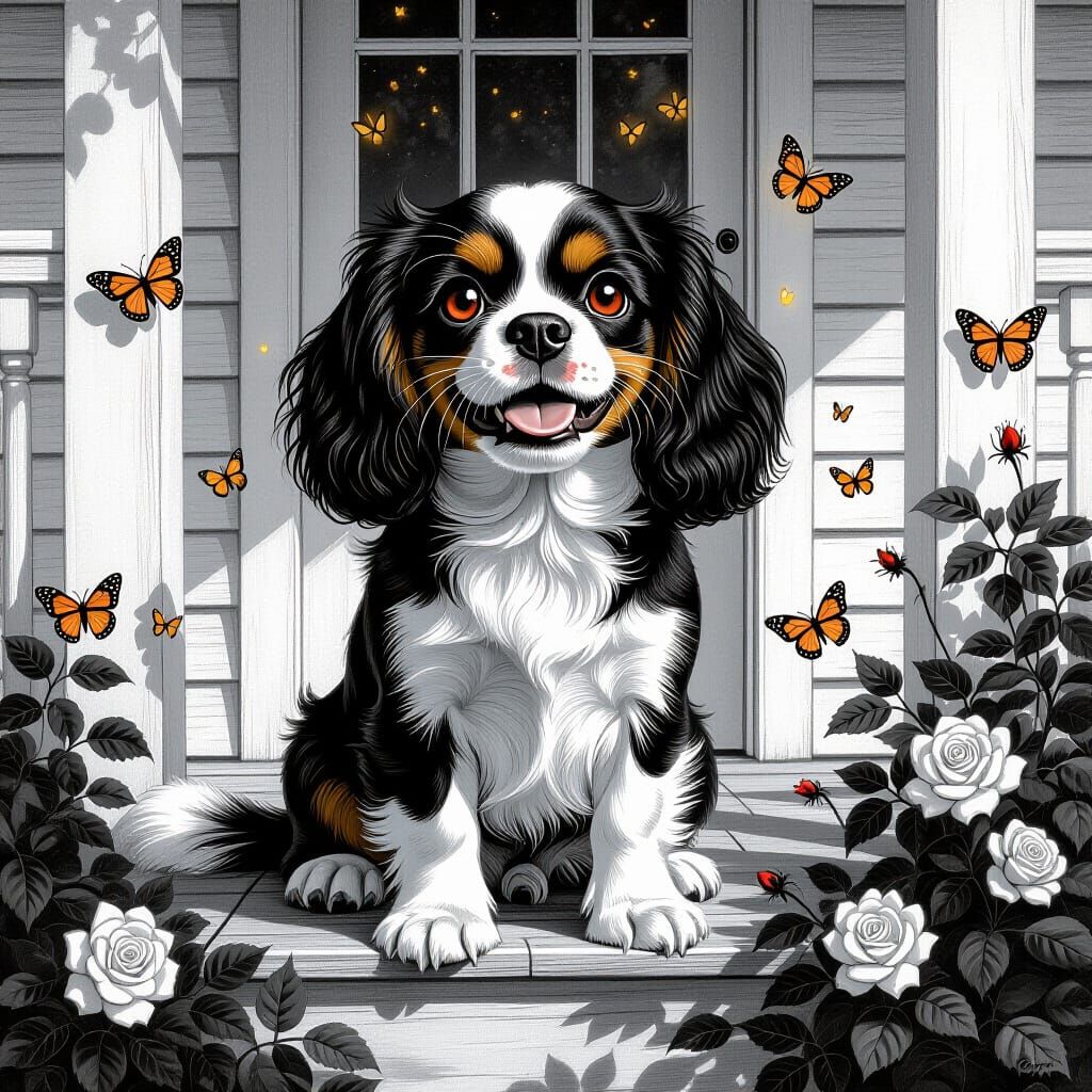 Create your own fantasy art featuring Cavalier King Charles Spaniels with our free and easy AI image generator!