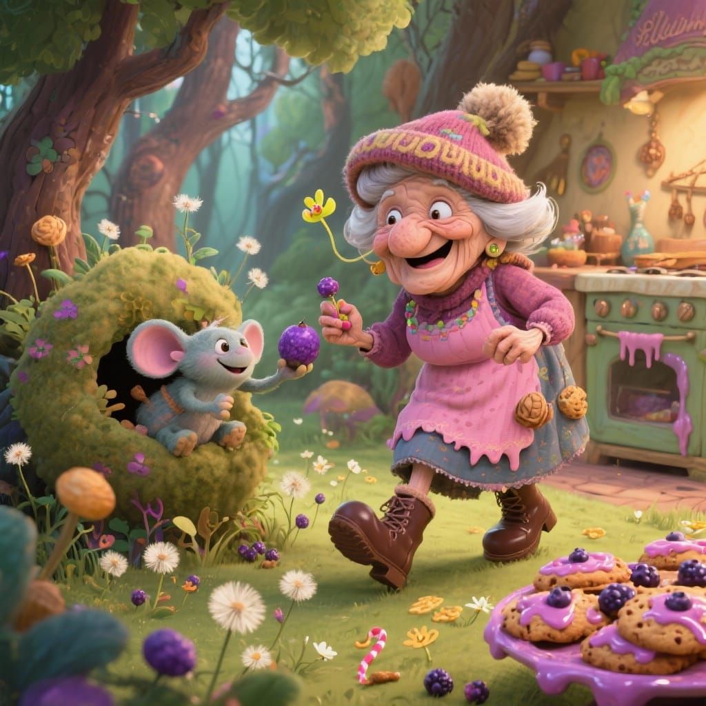 Most adorable granny! 🥰 and look at them wonder-cookies 😋 💜 🫐 !! Award worthy prompt!