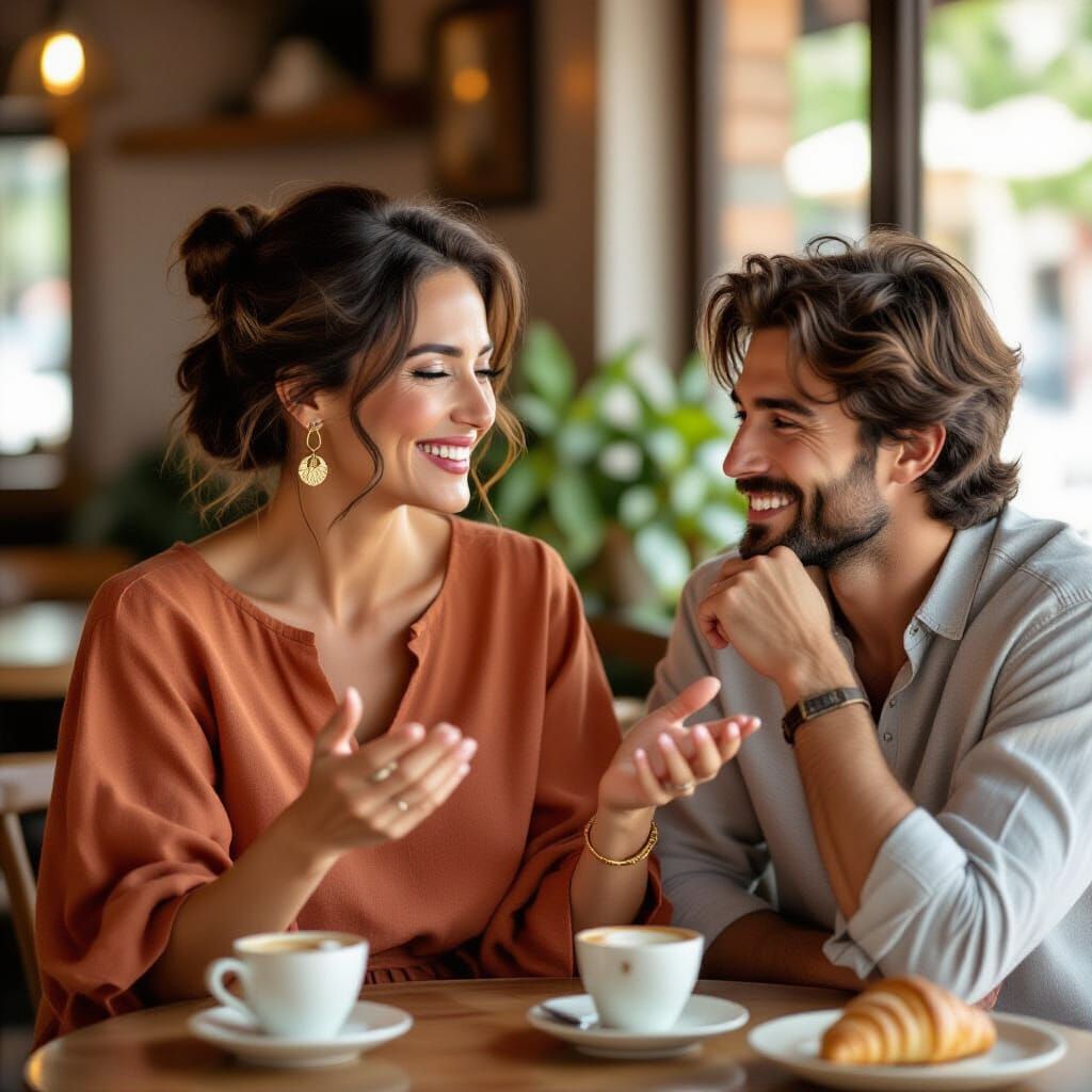 This watercolor-style image captures an elegant elder sharing a story, her hand resting on a companion's. Depicts Italian intimacy and understated style with expressive brushstrokes.