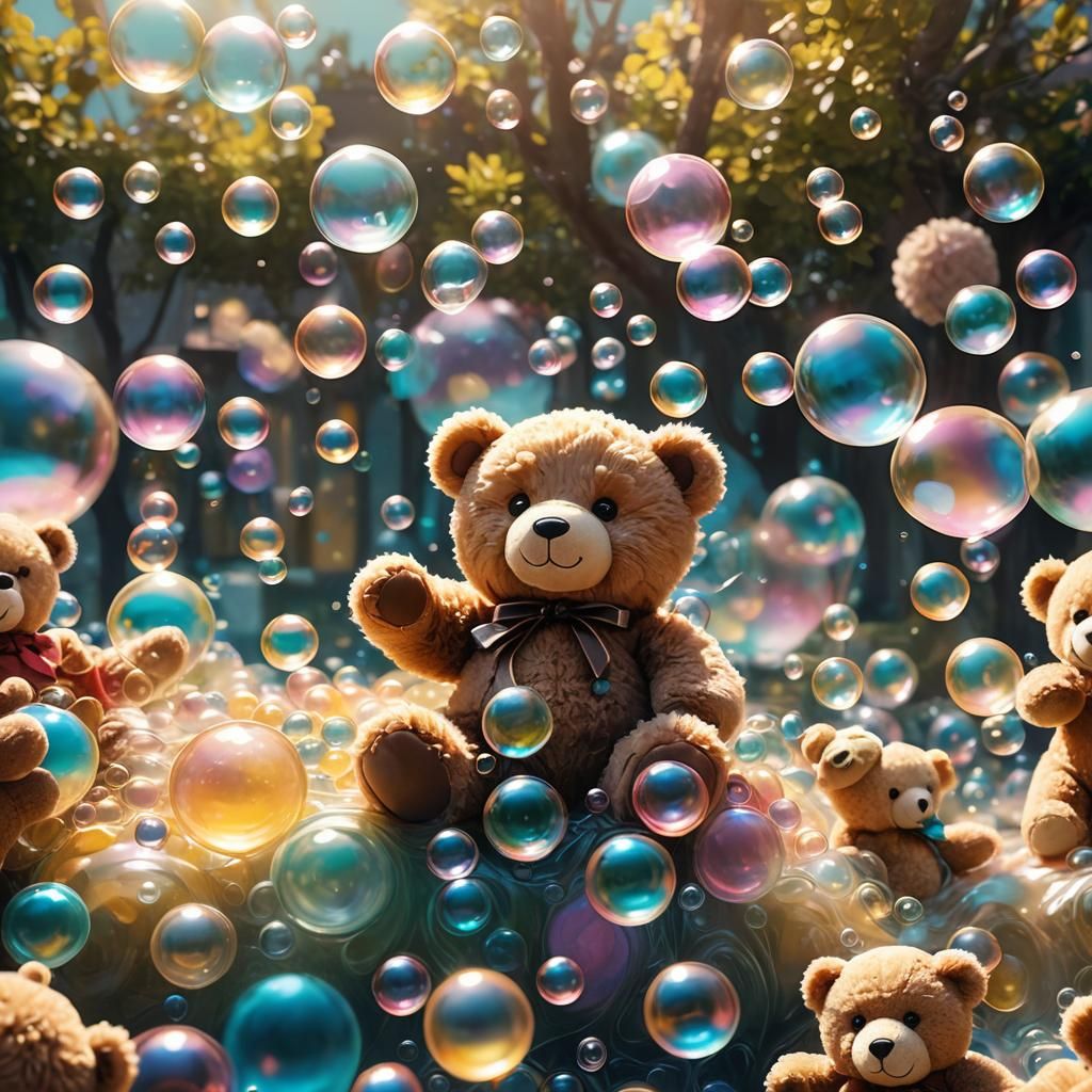 Create your own adorable teddy bear images floating in soap bubbles with our free and easy AI image generator!