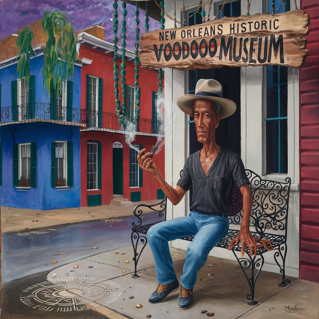 1st rule of Voodoo Museum----never talk about Voodoo Museum. You can tell by his hands that he's an imposter, just out to scam the tourists.....