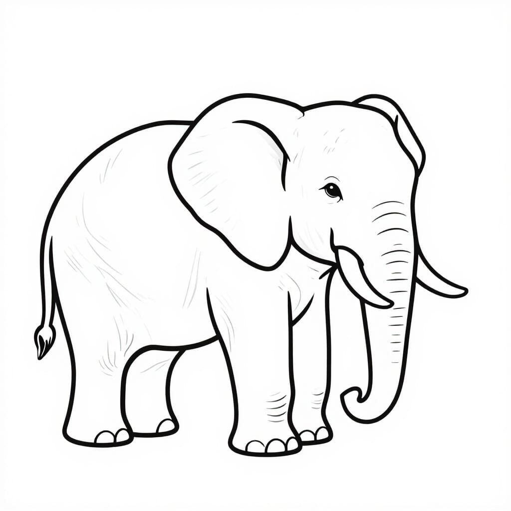 This image features a simple, clean line art outline of an elephant. The minimalist design uses smooth, unshaded lines on a white background, ideal for coloring.