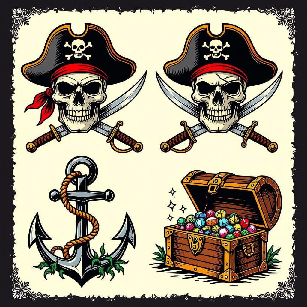 Create your own pirate flash tattoo designs! It's free, easy and fun to generate unique tattoo art.