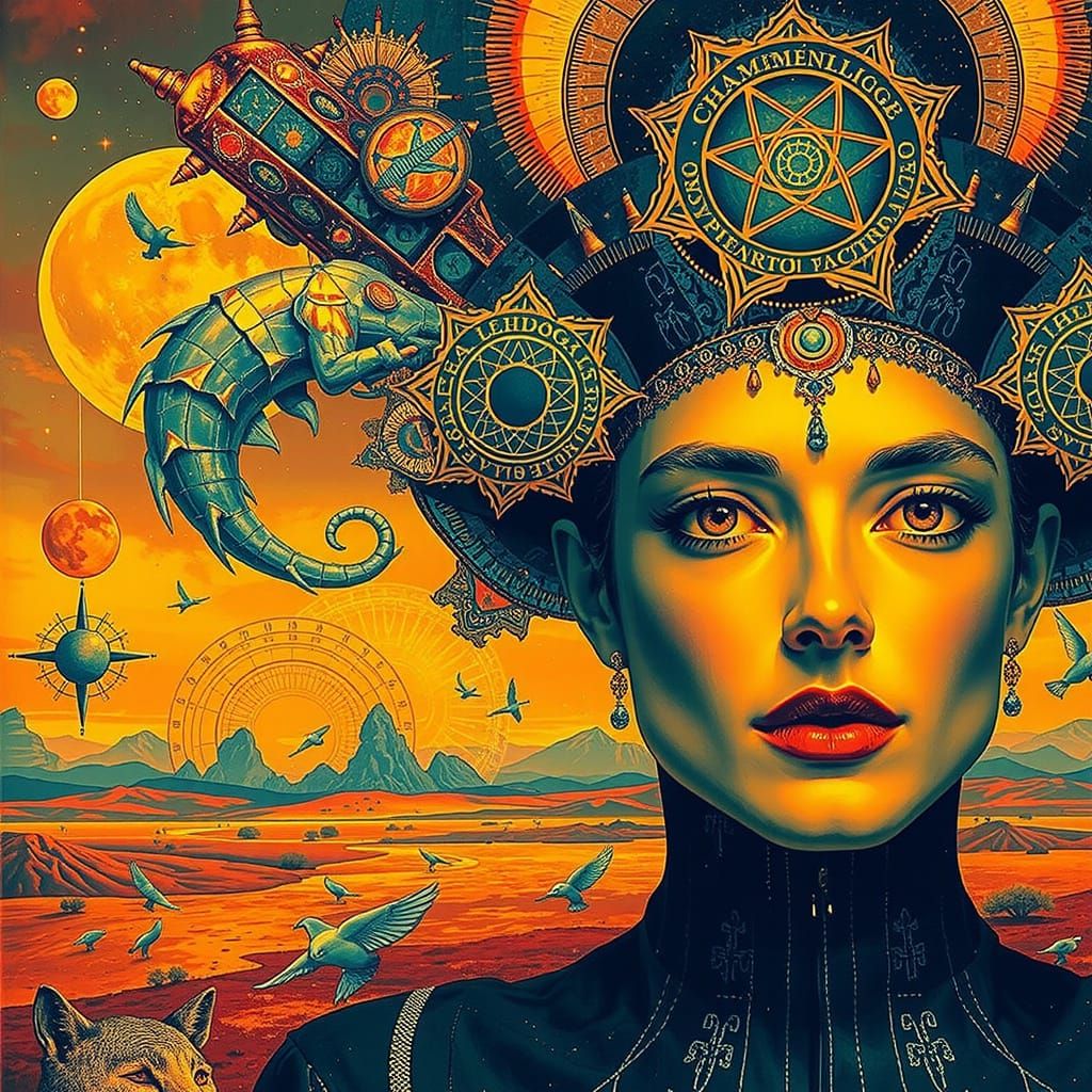 This image represents an AI's interpretation of several scientific and philosophical domains. It is a conceptual visualization of phenomenology, cosmology, anthropology, pharmacology, geology, and ontology.