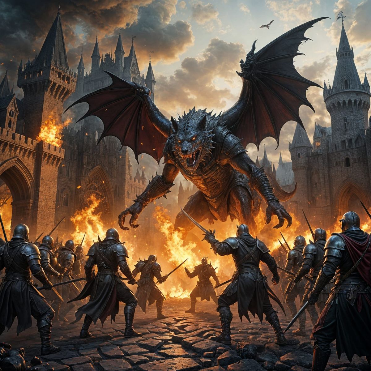 Create your own epic fantasy battles with our free AI image generator. It's easy to create stunning scenes.