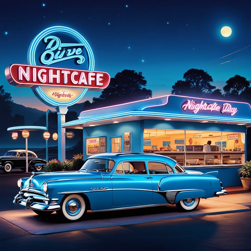 Transform your artwork with our free AI image generator - easily create your own vintage night café images with flexible settings