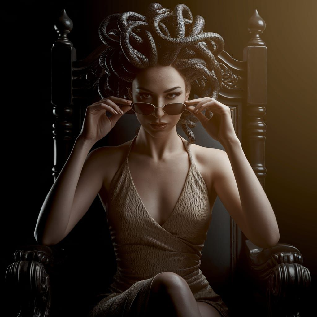 Transform your portraits with our free AI image generator, perfect for bold and striking images like Medusa's regal throne scene