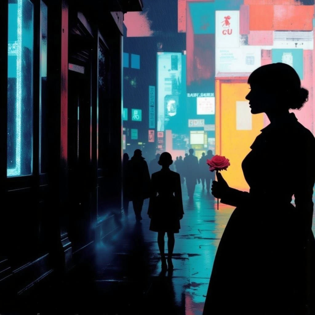 "Synthwave glitch art streetwalker nightlife neon nights Vibrant Saul Leiter colorful city scene in soft focus, circa 1955, fashionable people New York City, rainy day <lora:Atmosphere in Flux:1.0> <lora:11-11:1.0>"