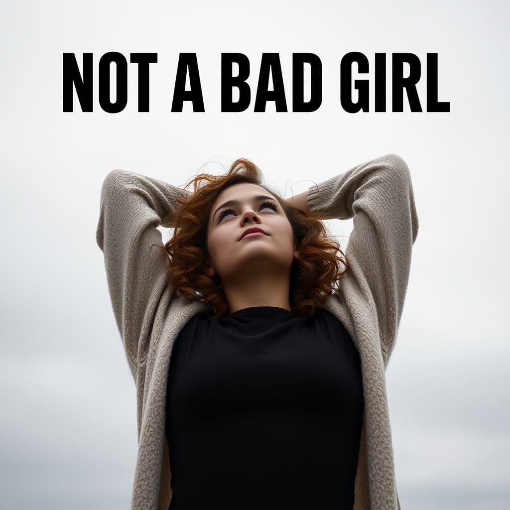 This image is a poignant portrayal of a young woman lost in thought, her emotions emphasized by a high-contrast black and white color scheme, with a bold sans-serif text overlay adding a sense of depth and introspection.