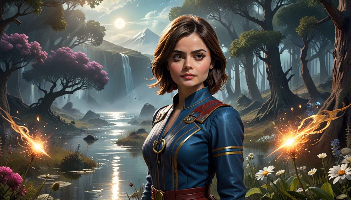 Create your own stunning images of Jenna Coleman as a pinup bomber girl with our free AI image generator!