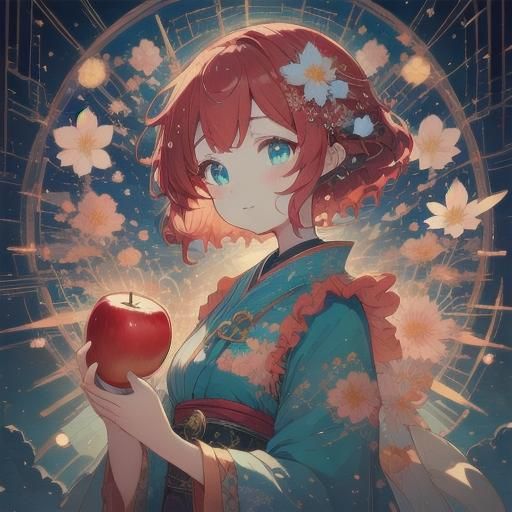 Using my fine tuned model with Blue pencil v10, I was able to get some amazing results! When I added the descriptions of my short red hair and blue eyes, and of course an apple, it seems like this could end up as a future profile picture! But thatโs just an observation! <D